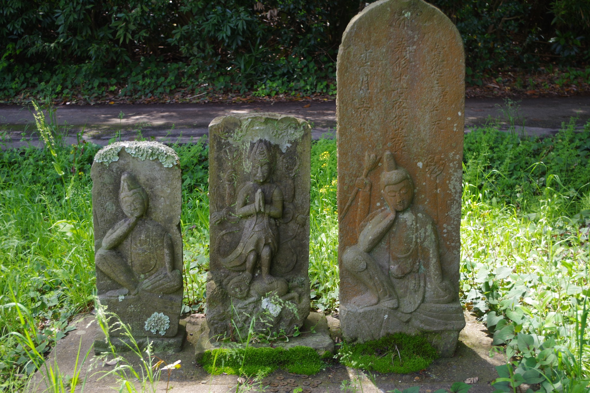 左から十五夜尊、庚申塔、十七夜尊