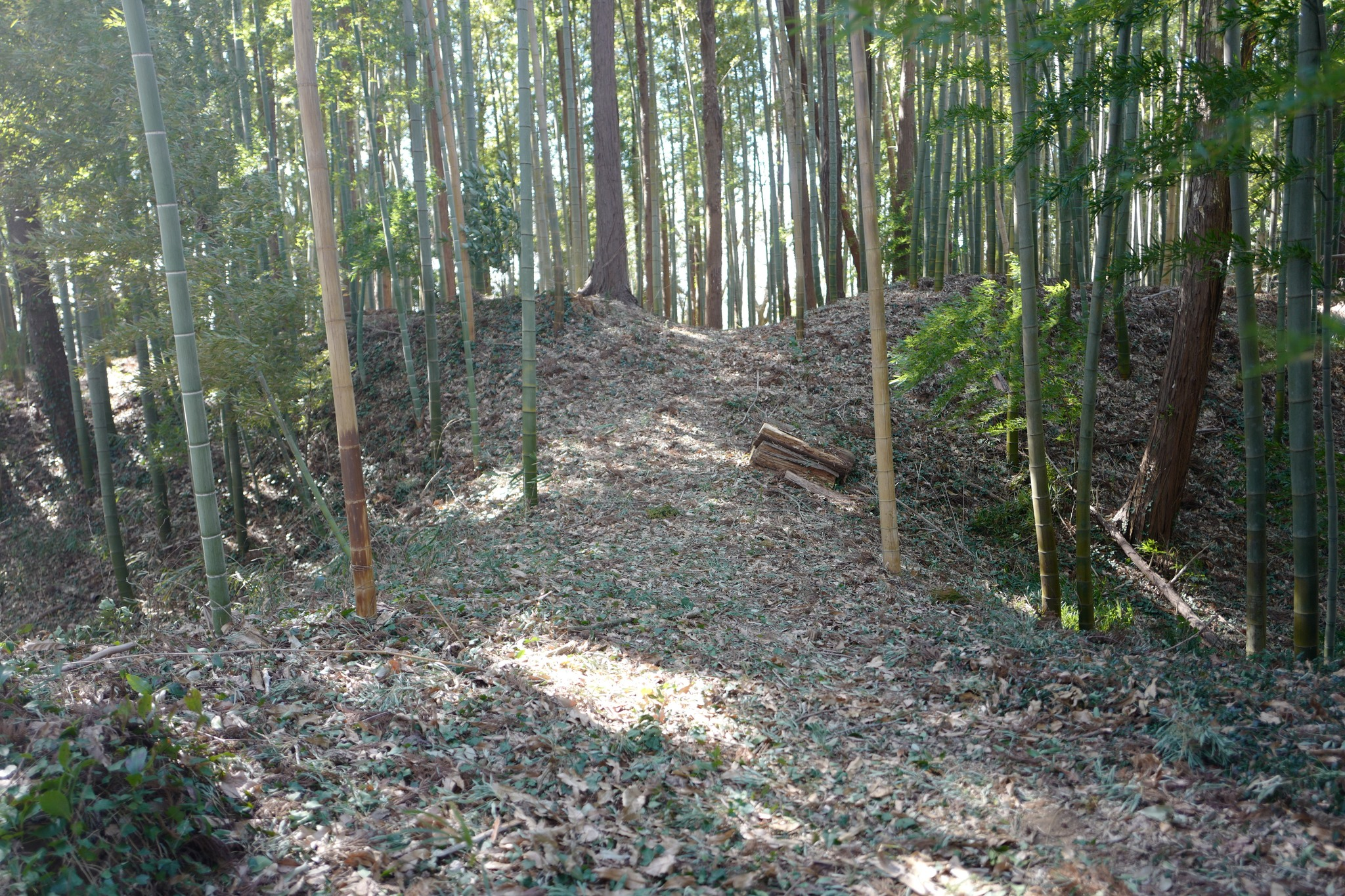 遺構は西側の道路から満願寺境内に入る道が北側の堀となっています。満願寺境内がⅢ郭で西側に土塁があり、南側に堀がありⅡ郭と区切られています。Ⅱ郭の南側にまた堀がありその先にⅠ郭があります。Ⅰ郭とⅡ郭は土橋で繋がっています。土橋から東側に続く堀の先がやや広がり腰曲輪になっています。