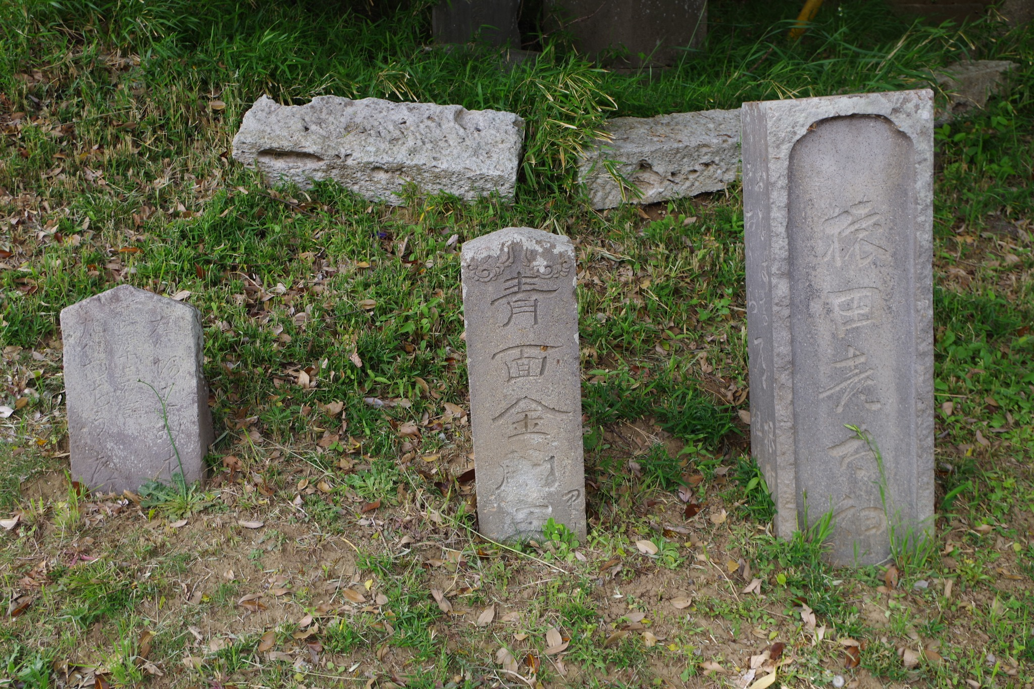 愛宕神社入口(一の鳥居)前に設置されています。道路拡張工事等で邪魔になった道標がこちらに置かれたと考えます。